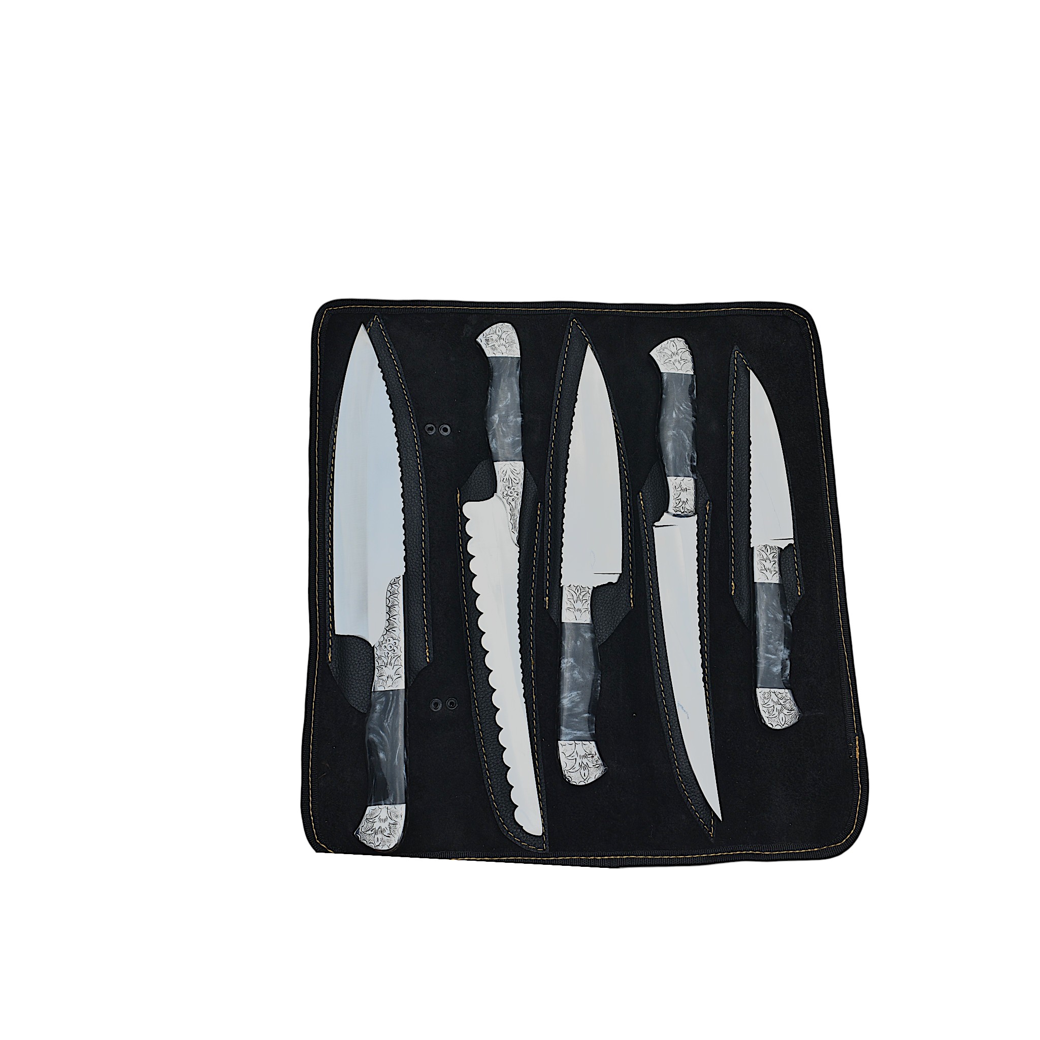 Ornate Bolster Culinary Knife Set (Black Resin)