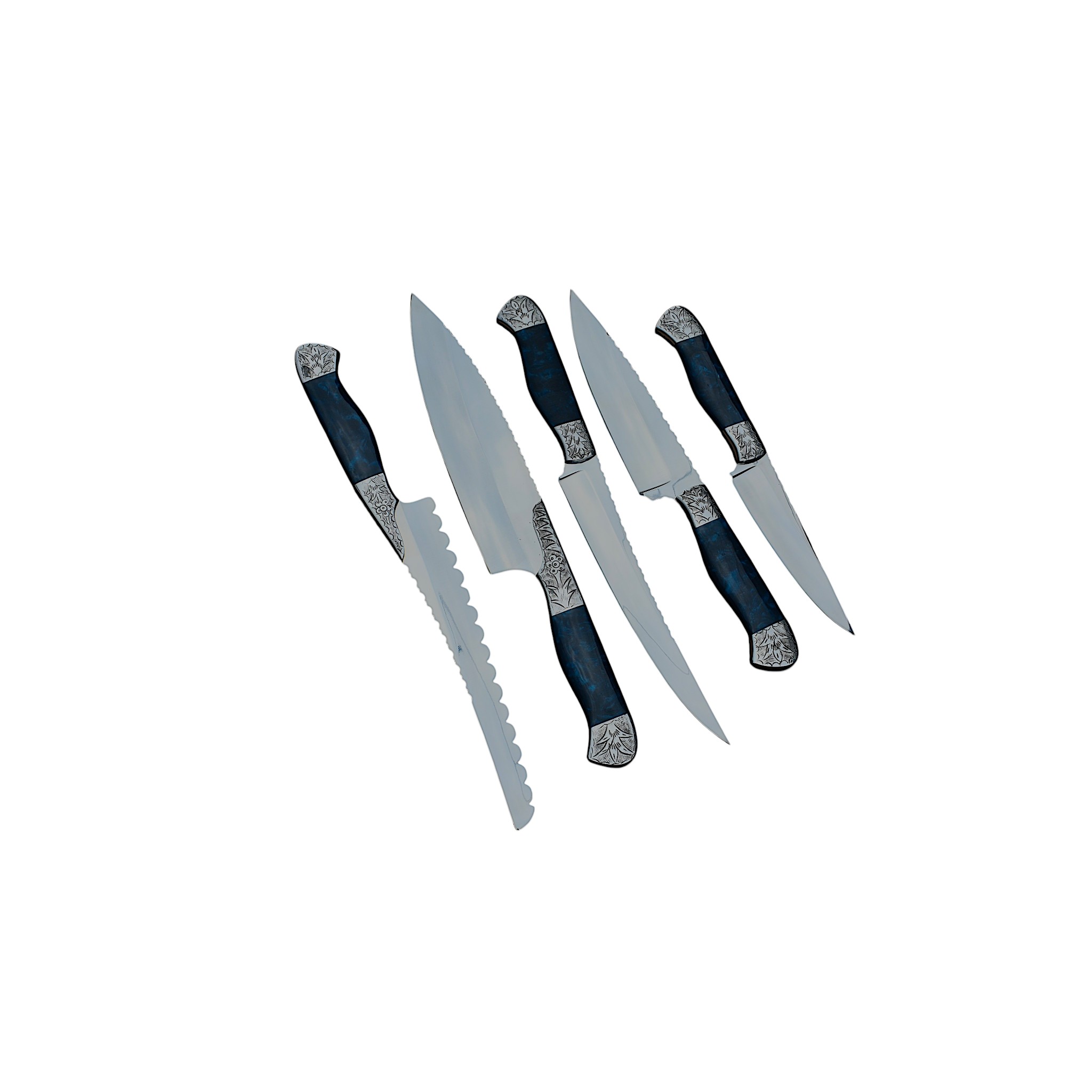 Ornate Bolster Culinary Knife Set (Blue Resin)